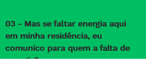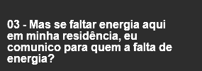 •  03 - Mas se faltar energia aqui em minha residência, eu comunico para quem a falta de energia?