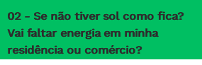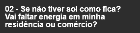 • 02 - Se não tiver sol como fica? Vai faltar energia em minha residência ou comércio?