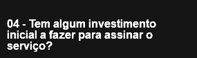•  04 - Tem algum investimento inicial a fazer para assinar o serviço?