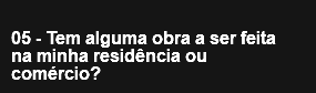 •  05 - Tem alguma obra a ser feita na minha residência ou comércio?