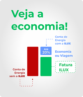 Veja no gráfico ao lado a ECONOMIA que você terá na sua fatura de energia todos os meses. Com o modelo de energia por assinatura ILUX, você pode economizar dinheiro e ajudar a preservar o meio ambiente. Juntos, podemos construir um futuro mais verde e justo.